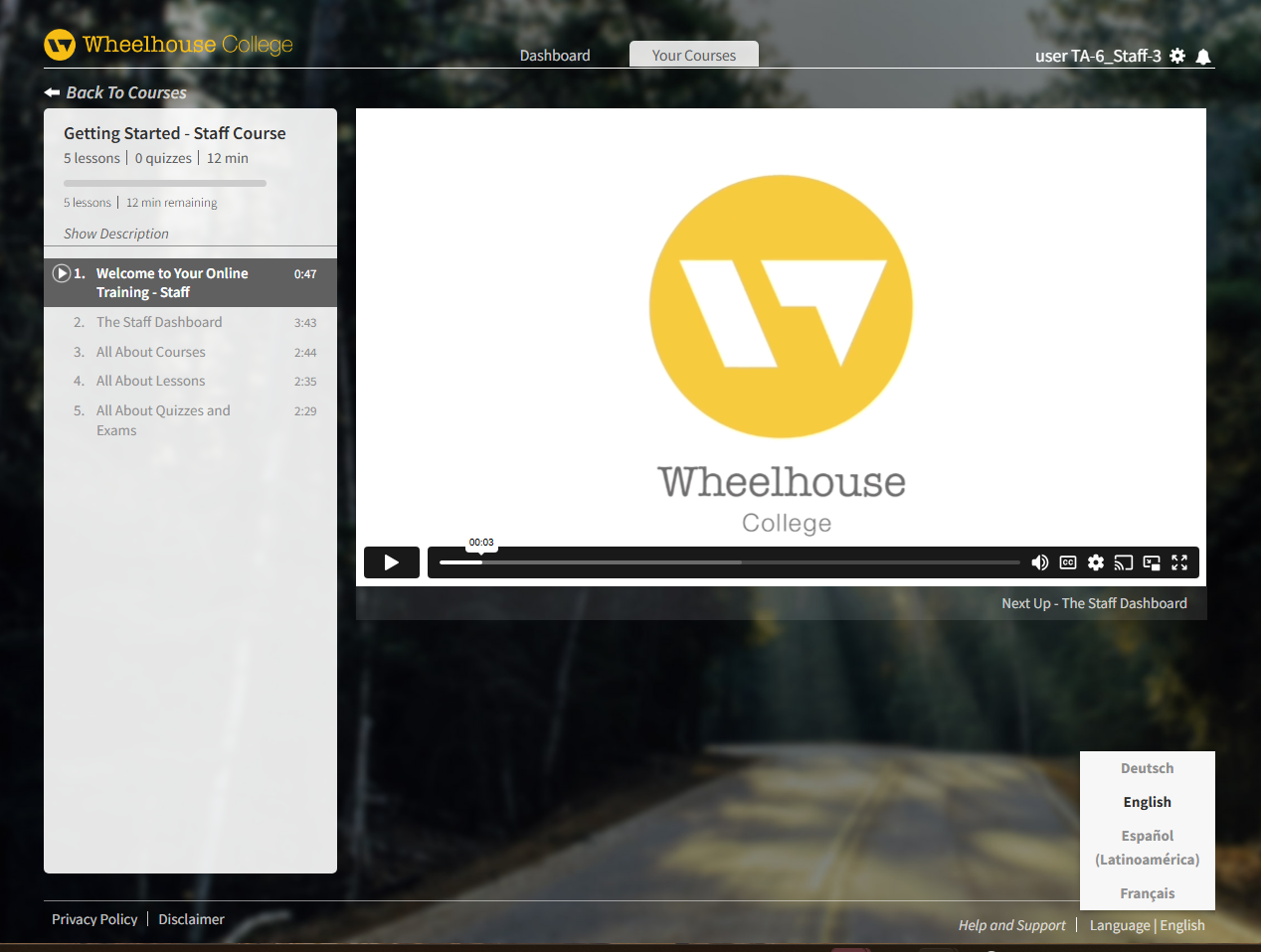 Once you've set the language in the videos or in the application, it will endure from page to page and video to video until you change the settings.