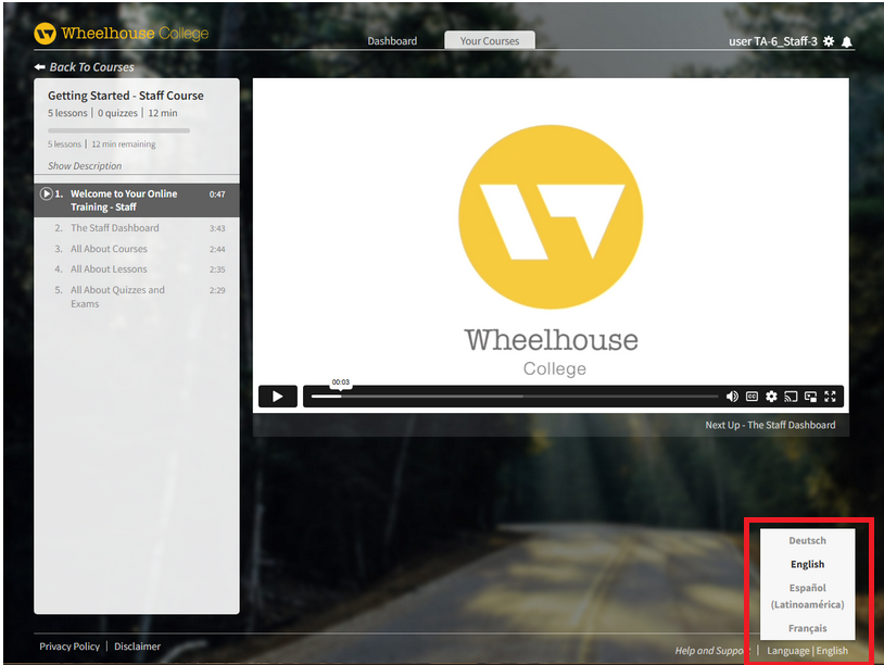 Une fois la langue définie dans les vidéos ou dans l'application, elle restera inchangée d'une page à l'autre et d'une vidéo à l'autre jusqu'à ce que vous modifiiez les paramètres.